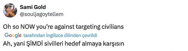 İsrail Savunma Kuvvetleri’nin resmi X hesabından, ‘İsrailli siviller şu anda İran rejiminin gayesi durumunda. Dünya sessiz kalamaz’ kelamlarıyla paylaşım yapıldı. Paylaşıma bir de İran’ın saldırısını gösterdiği argüman edilen bir paylaşım yapıldı.