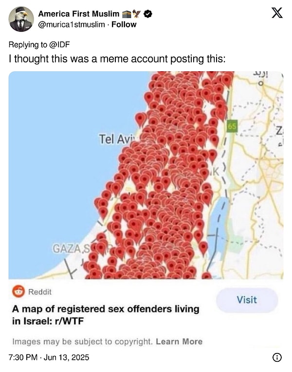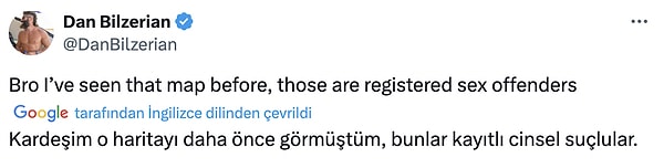 Bir öteki kullanıcı haritanın daha evvel Reddi’te paylaşıldığını ve “İsrail’de yaşayan kayıtlı cinsel hatalıların haritası” olduğunu ileri sürdü.