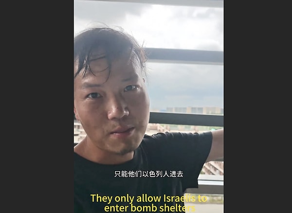 İsrail’de çalışan bir Çinli de savaşın görünmeyen yüzünü anlattı. Öteki ülke vatandaşlarının sığınakları kullanmasına müsaade verilmediğini söyleyen adam yaşananları bir görüntü ile paylaştı.