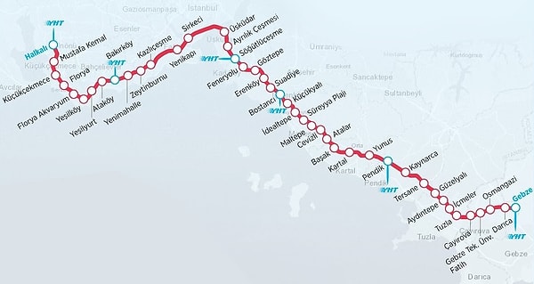 Halkalı’dan hareket eden Marmaray, Avrupa Yakası’nda 14 adet duraktan geçiyor, Anadolu Yakası’ndan ise Kocaeli’nin Gebze ilçesine kadar uzanıyor. Gebze-Halkalı ortasındaki seyahat müddetini 185 dakikadan 108 dakikaya kısaltan Marmaray, günde 1 milyon 700 bin civarı yolcuya hizmet veriyor.