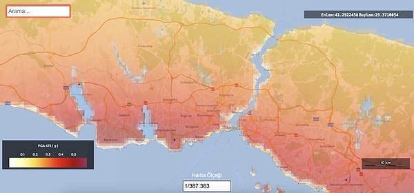 ‘Türkiye Sarsıntı Riski Haritası’, interaktif olarak AFAD tarafından hazırlandı. Bu haritada İstanbul sarsıntı riski haritası da görseldeki üzere hazırlandı. Kelam konusu interaktif haritayı sizler de inceleyebilir, dilediğiniz vilayet ve ilçenin sarsıntı riskini öğrenebilirsiniz. AFAD İstanbul sarsıntı riski haritası, e-devlet ile incelenebiliyor.