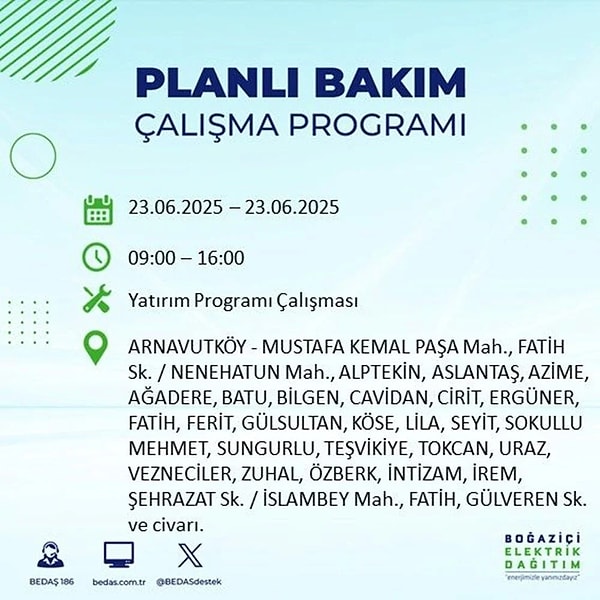 Kesintiler, planlı yatırım ve bakım çalışmaları kapsamında gerçekleşecek. Boğaziçi Elektrik Dağıtım A.Ş, (BEDAŞ) elektrik kesintisi yaşanacak ilçeleri ve mahalleleri sokak sokak detaylı halde yayınladı.