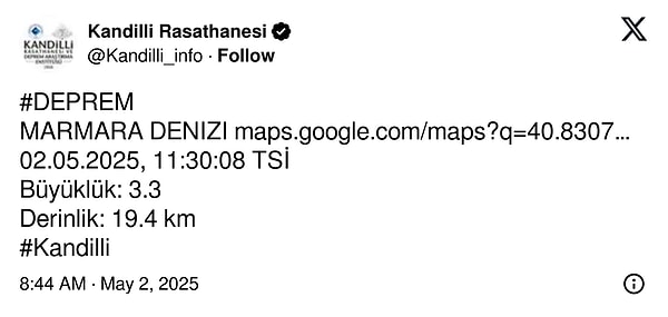 İstanbul’da geçtiğimiz hafta meydana gelen sarsıntı sonrasında artçı sarsıntılar aralıksız olarak devam ediyor. Bugün de saat 11:30’da merkezüssü Marmara Denizi olan bir artçı sarsıntı meydana geldi.
