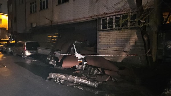 Kağıthane Nurtepe Mahallesi Eğriçınar Sokak’ta ise rüzgar tesiriyle uçan çatı kesimleri park halindeki araçların üstüne düştü.