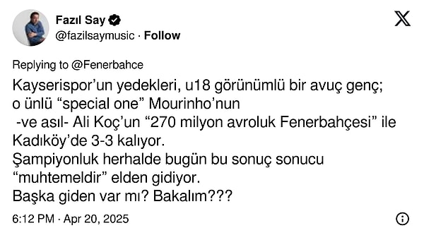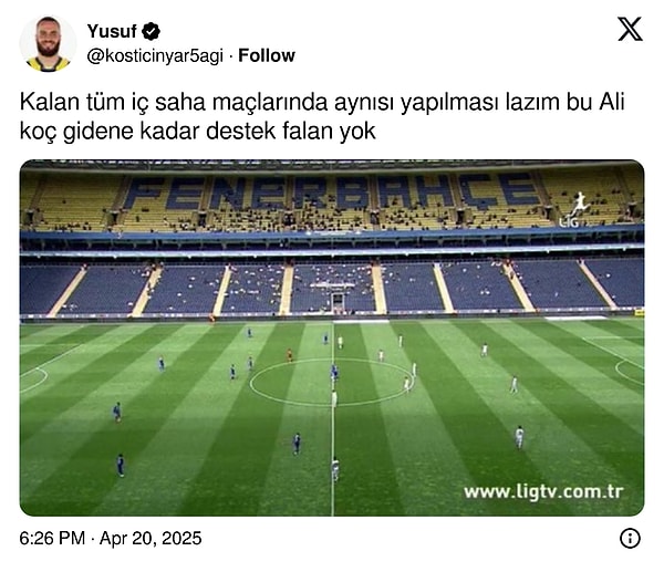 2023-2024 döneminde İsmail Kartal ile kaçan şampiyonluk sonrası teknik yöneticiliğe dünyaca ünlü çalıştırıcı Jose Mourinho’yu getiren Fenerbahçe’de işler yeniden aksi gitti. 99 puan toplayan takımın üzerine önemli destekler yapan Lider Ali Koç ve idaresinin 2024-2025 döneminde da kupa sevinci yaşaması imkansız hale geldi. Sarı-lacivertliler, Türkiye Kupası ve Avrupa’dan elenirken Üstün Lig’in bitimine 6 hafta kala da başkan Galatasaray’ın 5 puan gerisine düştü. Taraftarlar, toplumsal medyada Koç’u istifaya davet etti, değişim dedi.