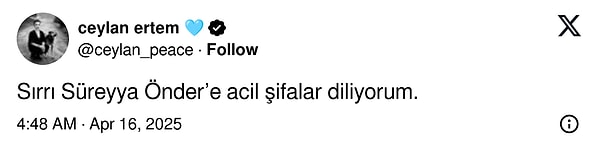 Sabah saatlerinden bu yana, haberi alan birçok ünlü isim toplumsal medya hesabından Lider için bildiri paylaştı.
