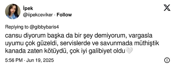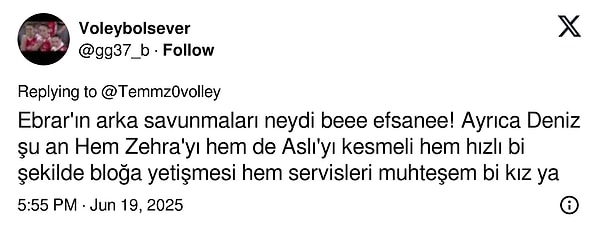 Kanada’yı 3-0 mağlup ederek Milletler Ligi’ndeki galibiyet serisini 6 maça çıkaran, bir rakibini daha parkeden eli boş gönderen Filenin Sultanları’nın çabası voleybolseverlerden tam not aldı. Oyuncularımızın dayanılmaz performansı, toplumsal medyada alkış topladı.