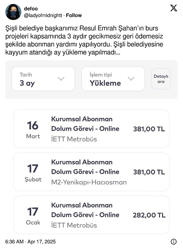 Şişli Belediye Başkanı Resul Emrah Şahan 19 Mart sabahı Ekrem İmamoğlu ile birlikte gözaltına alınan isimlerdendi. Daha sonrasında terör ve yolsuzluk kapsamında tutuklanan Şahan’ın yönettiği belediyeye kayyum olarak Cevdet Ertürkmen atandı. Fakat Kent Lokantaları ile başlayan reaksiyonlar öğrenci burslarıyla devam etti. Tezlere nazaran Ertürkmen vazifeye başladığından beri Şişli Belediyesi’nin öğrencilere verdiği burs ve ulaşım yardımı sahiplerine ulaşmıyor.