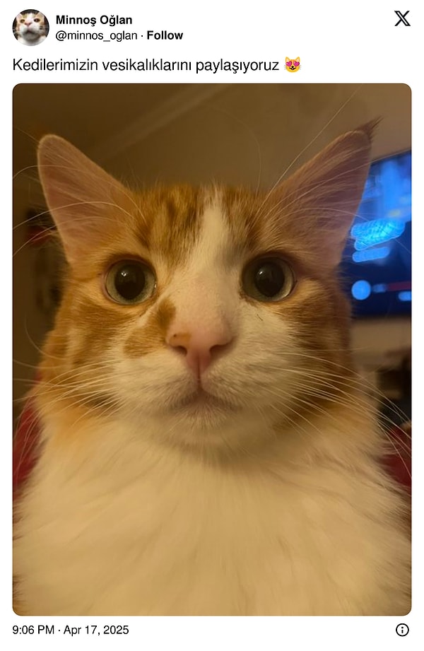 Dört ayaklı dostlarımız kedileri sevmeyen var mı? Her anını kameraya çekip paylaşmak, minik dostlarımızın en tatlı anlarını görmek hepimizi keyifli ediyor. Twitter (X) kullanıcıları da kedilerinin ‘vesikalık’ fotoğraflarını paylaşarak gözlerimizden kapler çıkarttı.