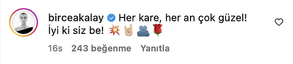 Profesyonelliğini koruyan ve kıskançlığın zerresine sahip olmadığını kanıtlayan Tekçe Akalay, Hakan Kurtaş’ın gönderisinin altına, ‘Her kare, her an çok güzel! İyi ki siz be!’ yorumunu bıraktı.