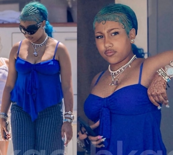 12 yaşındaki North West’in ortaya çıkan bu kareleri ise yaşından epey büyük göstermesiyle, maviye boyalı saçlarıyla ve üslubuyla toplumsal medyaya damga vurdu.