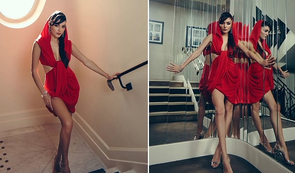 Son iki gündür Cannes kırmızı halısında görenleri büyüleyen Hande Erçel’in kırmızılı kombini tenkit topladı!
