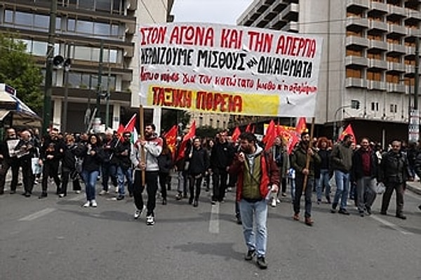 Yunanistan Komünist Partisi’ne bağlı PAME emekçi sendikası da greve takviye verdi.