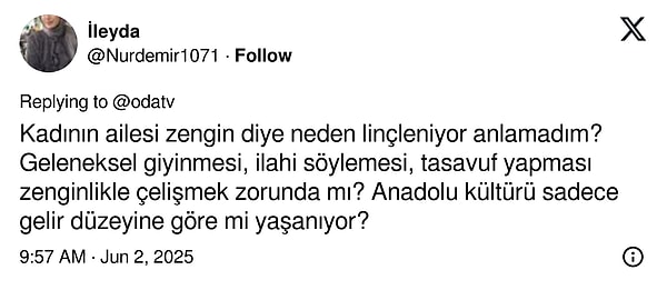 ‘Böyle haberler dolaşıyor medyada. Ünlü burjuvalardan Cem Boyner’in kızı ilahi söylemiş filan.