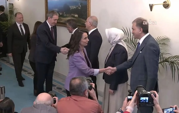 DEM Parti Eş Genel Liderleri Tülay Hatimoğulları ve Tuncer Bakırhan ile Küme Başkanvekilleri Gülistan Kılıç Koçyiğit ve Sezai Temelli’den oluşan heyet, AKP kümesini ziyaret etti. Görüşme saat 16.40’da Meclis’te başladı.