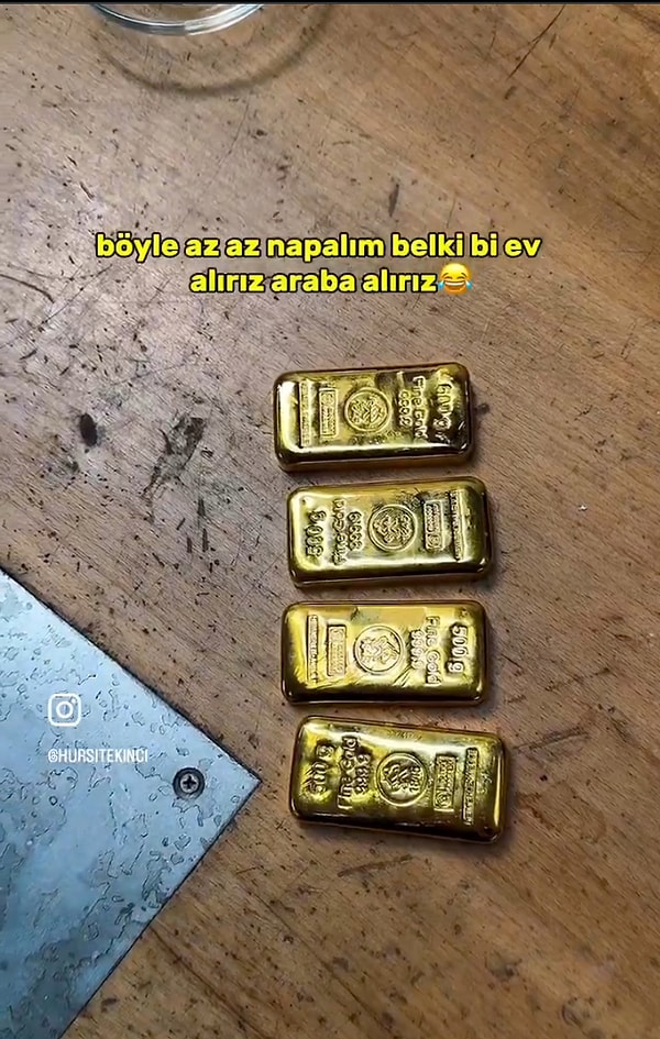 Bir yıldır Almanya’da bulunan Türk vatandaşının yaptığı paylaşım toplumsal medyada gündem oldu. Kendisine “Almanya’da otomobil aldın mı?” sorularının sıklıkla sorulduğunu söyleyen gurbetçi vatandaş, biriktirdiği külçe altınlarını paylaştı.