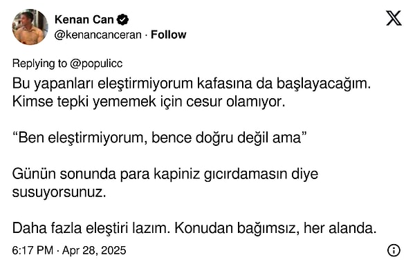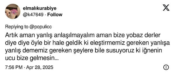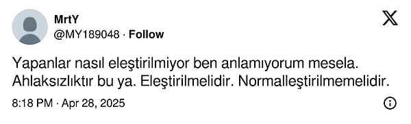Melis İşiten’in bu durumu olağan bulmamasına karşın, “Yapanları eleştirmiyorum” diyerek diretmesi kimi toplumsal medya kullanıcılarının reaksiyonunu çekti. Buyurun, kimler ne demiş bir arada bakalım! 👇