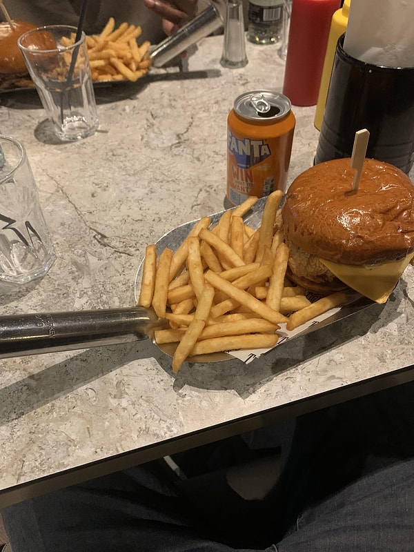 1. Birinci lezzetimiz kutuda hamburger ve patates!