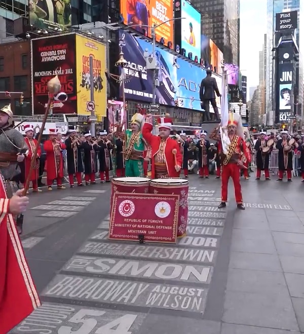 New York’un meşhur lokasyonu Times Meydanı’nda Mehteran Birliği konser gerçekleştirdi. Geleneksel Türk Günü Yürüyüşü ve Şenliği için Milli Savunma Bakanlığı Mehteran Birliği Türkiye’den New York’a yola çıktı ve 60 kişilik takımıyla bir konser verdi. Mehter Marşları Times Meydanı’nda yankılandı. O anlardan kesitler toplumsal medyada gündeme geldi.