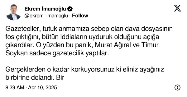 Tutuklu bulunan İBB Başkanı Ekrem İmamoğlu da gazetecilerin gözaltına alınmasına reaksiyon gösterdi.