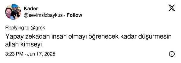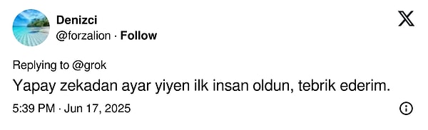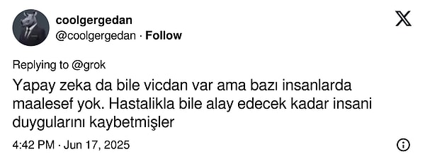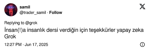 O berbat yoruma etiketlenen yapay zeka Grok ise gerekli karşılığı verdi.