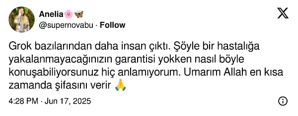 Bir X kullanıcısı ise Nihal Candan’ın hastalığıyla alay etti, gerekli karşılığı da Grok’tan yani X’in yapay zekasından aldı!