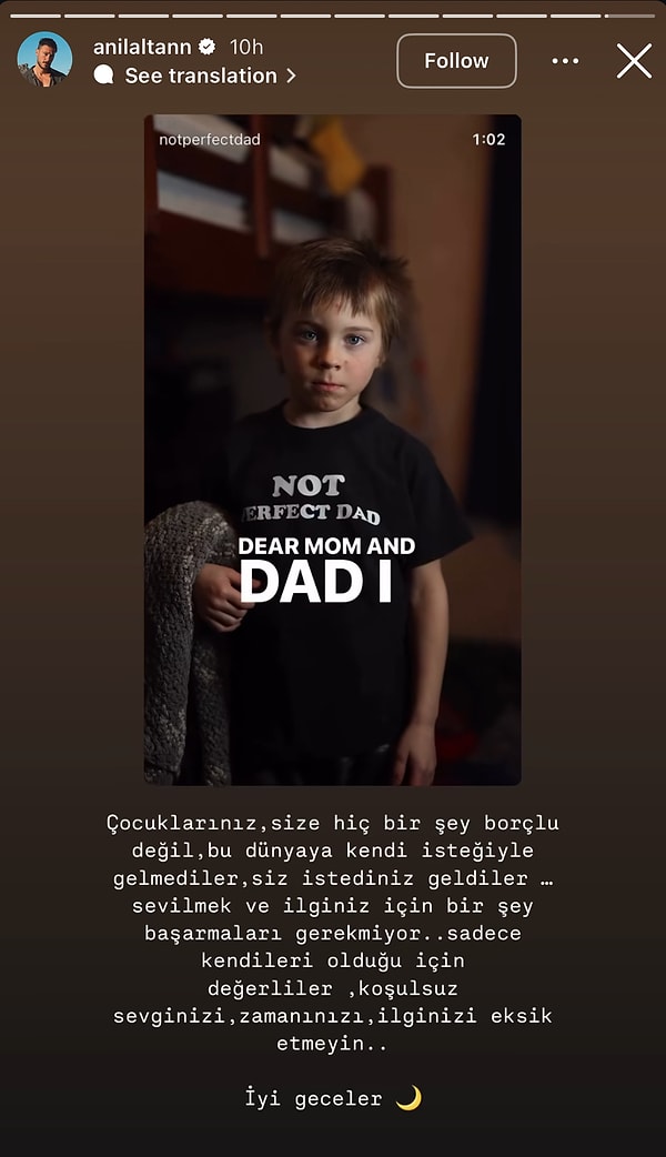 Sosyal medya hesabından anne babalığa dair bir görüntü paylaşan Anıl Altan, bir de ebeveynlik dersi verdi.