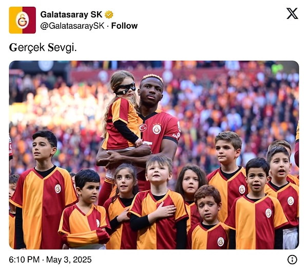 Sivasspor gayretinden 4-1’lik skorla galip ayrılan Galatasaray, toplumsal medya hesabından maç sonunda doksan dakikanın birinci düdüğünün öncesine damga vuran an hakkında ‘gerçek sevgi’ paylaşımında bulunmuştu.