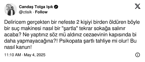 Tengioğlu, müebbet mahpus cezası almıştı ama 2020 yılında şartlı tahliye ile özgür bırakıldı.