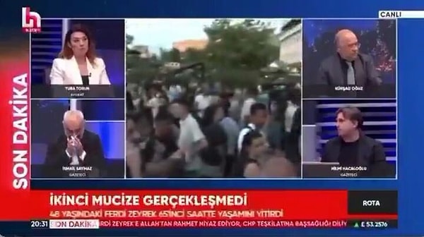 CHP Genel Başkanı Özgür Özel’in Manisa Büyükşehir Belediye Lideri Ferdi Zeyrek’in vefatı sonrası yaptığı duygusal açıklama herkesi duygulandırdı. O duygusal anlardan biri de Halk TV canlı yayınında yaşandı. Özel’in açıklamasını dinleyen gazeteci İsmail Saymaz, Kürşad Oğuz, Hilmi Hacaloğlu ve Tuba Torun gözyaşlarına boğuldu.