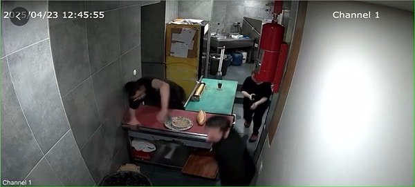 Beyoğlu’nda ise bir lokantanın mutfağında sarsıntıya yakalanan bir çalışan da tezgah üzerinden atlayarak süratle mutfaktan kaçtıkları anlar güvenlik kamerasına yansıdı.