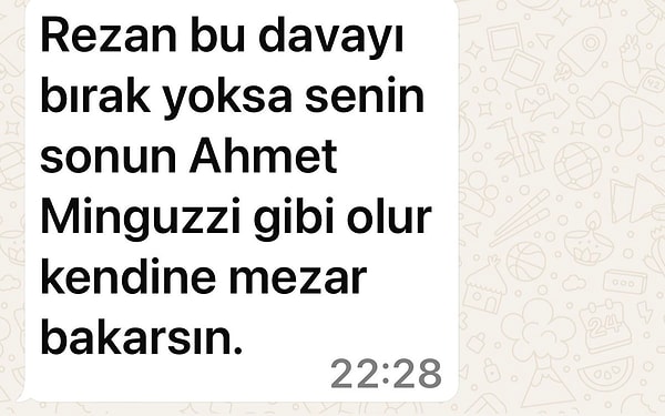 Avukat Rezan Epözdemir WhatsApp üzerinden aldığı tehdit bildirisini paylaştı.