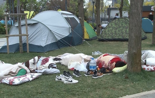 Evlerine girmeye çekinen vatandaşlar park alanlarına, okul bahçelerine ya da müsait alanlara süreksiz çadırlar kurarak geceyi dışarda geçirmeyi tercih etti.