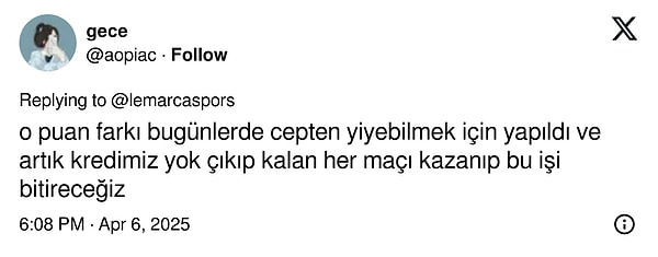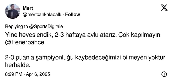 Süper Lig’in 30. haftasında Fenerbahçe, Trabzonspor’u alanında 4-1 mağlup ederek şampiyonluk hasretine son verme tezini sürdürdü. Önder Galatasaray’ın bay geçtiği haftada alınan galibiyet, taraftarların kupa inancını artırdı. İşte taraftarların şampiyonluğa dair sosyal medyada öne çıkan yorumları.