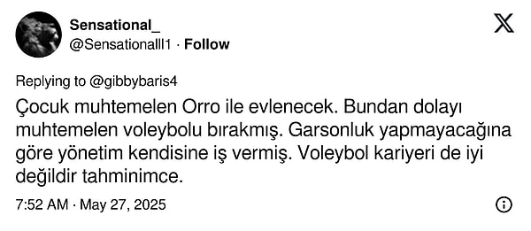 Fenerbahçe Bayan Voleybol Grubu’nun yeni transferi Alessia Orro’nun erkek arkadaşı Matteo Picchio, sevgilisinin mesleği için voleybol hayatını noktaladığını duyurdu. 26 yaşındaki oyuncu, Orro’nun Türkiye’de yaşayacak olmasında ötürü bu türlü bir karar aldığını belirtirken sarı-lacivertli kulüpte antrenörlük için staj yapacağını söz etti.
