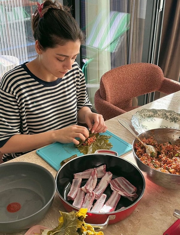 Hayatına dair sık sık paylaşım yapan Sıla Türkoğlu, bu sefer de yaprak sarması yaparken fotoğrafını paylaştı.