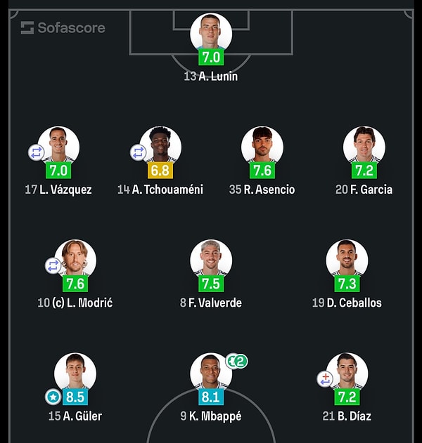 Son haftalarda yakaladığı çıkışla tesirli bir oyun ortaya koyan Arda Güler’in, yükselen performansı bu maçta da sürdü. Müsabakanın tamamında mühlet bulan Arda’nın reytingi 8.5 oldu. İki gol atan Mbappe 8.1 reytingde kaldı. Arda’nın istatistikleri şöyle: