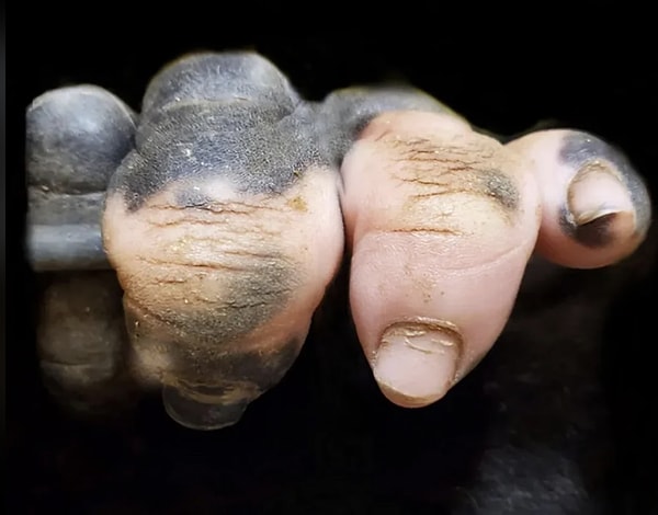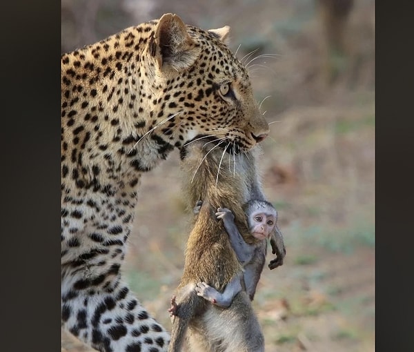 ‘Yeni doğmuş bir maymun, bir leopar tarafından öldürülen annesine sarılıyor.’