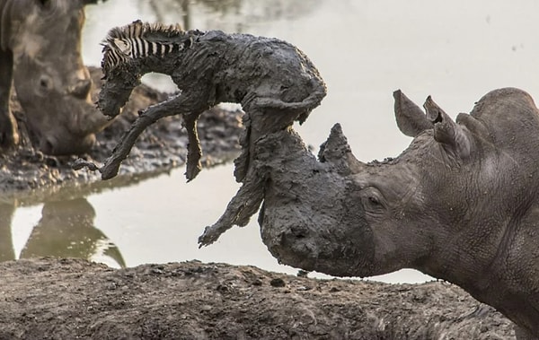 12. “Zebra tayı gergedan tarafından kazığa geçirildi.”