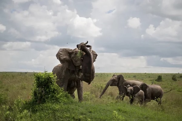 ‘Savanada çok az görülen bir imaj olan ‘kara ölüm’ bu sürüdeki cenaze merasimine yeni bir renk katıyor.’