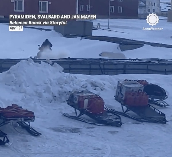 ‘Bir adam, saldıran kutup ayısından kaçmak için kar otomobiline atladı.’