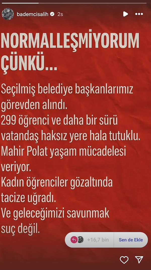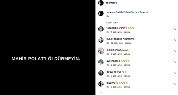 Birçok sanatçı paylaşımlarıyla Polat’ın hür bırakılması gerektiğini vurguladı.