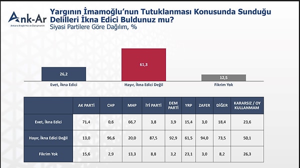 %61 İmamoğlu’nun tutuklanmasına neden olan kanıtları ikna edici bulmuyor.