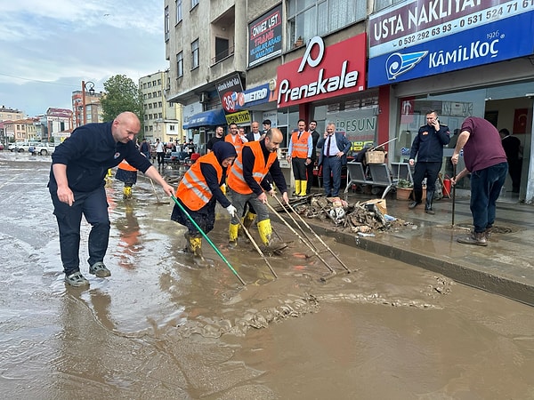 Trabzon’da tesirli olan yağış sonrası kent merkezi ve ilçelerde sel meydana geldi.
