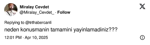 TRT Haber’in uzun paylaşımında da bu kısmın kesildiği anlaşıldı.
