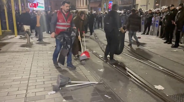 Tünel Meydanı’nda Gazze Yürüyüşünde Polis Manisi ile Karşılaşan Gençler Aksiyon Sonrası Yerleri Temizledi