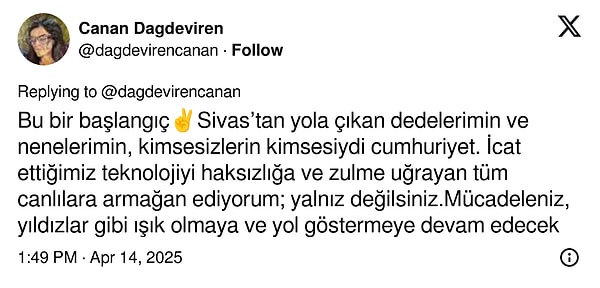 Dağdeviren, bu değerli buluşunu uzaya gönderirken Atatürk’ü de unutmadı. Atatürk’ün fotoğrafıyla birlikte aygıtını uzaya gönderen Dağdeviren, ‘tarihe not düşülsün.’ dedi.