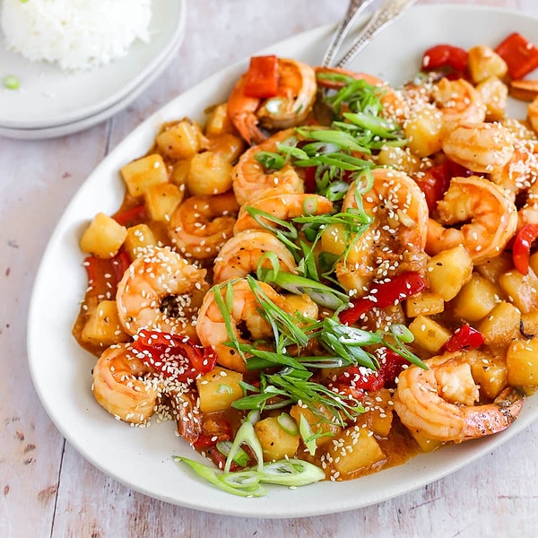 Karides zati seviyorsan bu tanım tam senlik diyebiliriz. Ancak bu kolay bir karides değil. Bu tarifle karidesin lezzetine lezzet katıyoruz. Tatlı ekşi bir sos hazırlayarak karidesi daha lezzetli bir hale getirmek mümkün. Dilim ananas, kırmızı biber ve taze soğanla tavada pişireceğin karidese sunduğun herkes bayılacak.