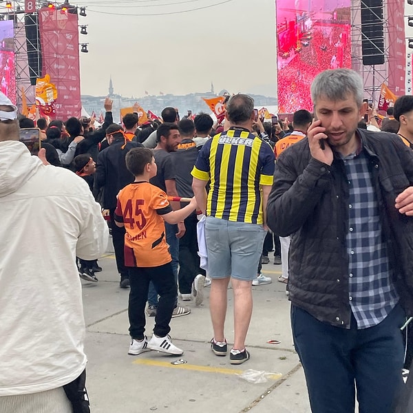 Galatasaray, yağmurlu İstanbul akşamında 25 Mayıs Pazar günü şampiyonluk kupasını kaldırdı. Yüz binlerce kişinin akın ettiği kutlamalar değişik imajlara de mesken sahipliği yaptı. Gündem olan fotoğraflarında biri de bir baba oğula aitti. Galatasaray forması giyen küçük bir çocuk kutlamalara Fenerbahçe forması giyen babasıya geldi. Fotoğraf toplumsal medyada gündem olurken altına pek çok da yorum geldi.
