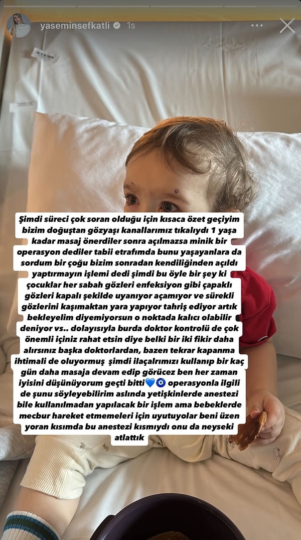 Yasemin Şefkatli, ikiz oğulları Ayel ve Emir’in gözyaşı kanalı tıkanıklığı nedeniyle geçirdiği ameliyat sonrası yaşadıklarını takipçileriyle paylaştı! Yasemin Şefkatli’nin ikiz bebekleri doğumun akabinde birtakım sıhhat sıkıntılarıyla karşılaşmıştı. Doğum sonrası Ayel ve Emir’in sıhhat durumu, Şefkatli’nin takipçileri tarafından sıkça merak edilirken ikizlerin gözlerinden operasyon geçirdiği öğrenildi.